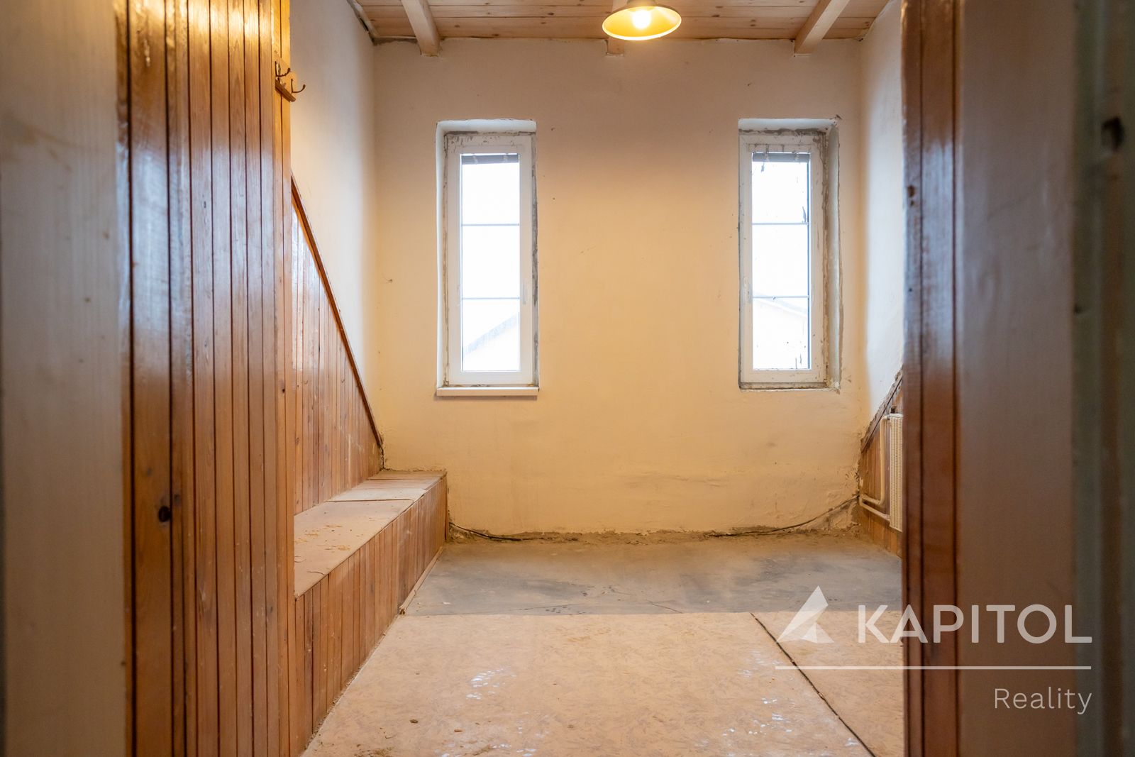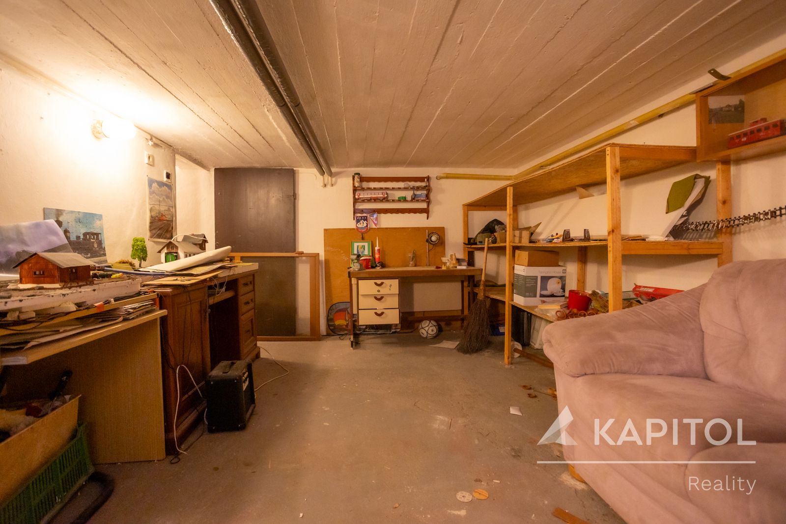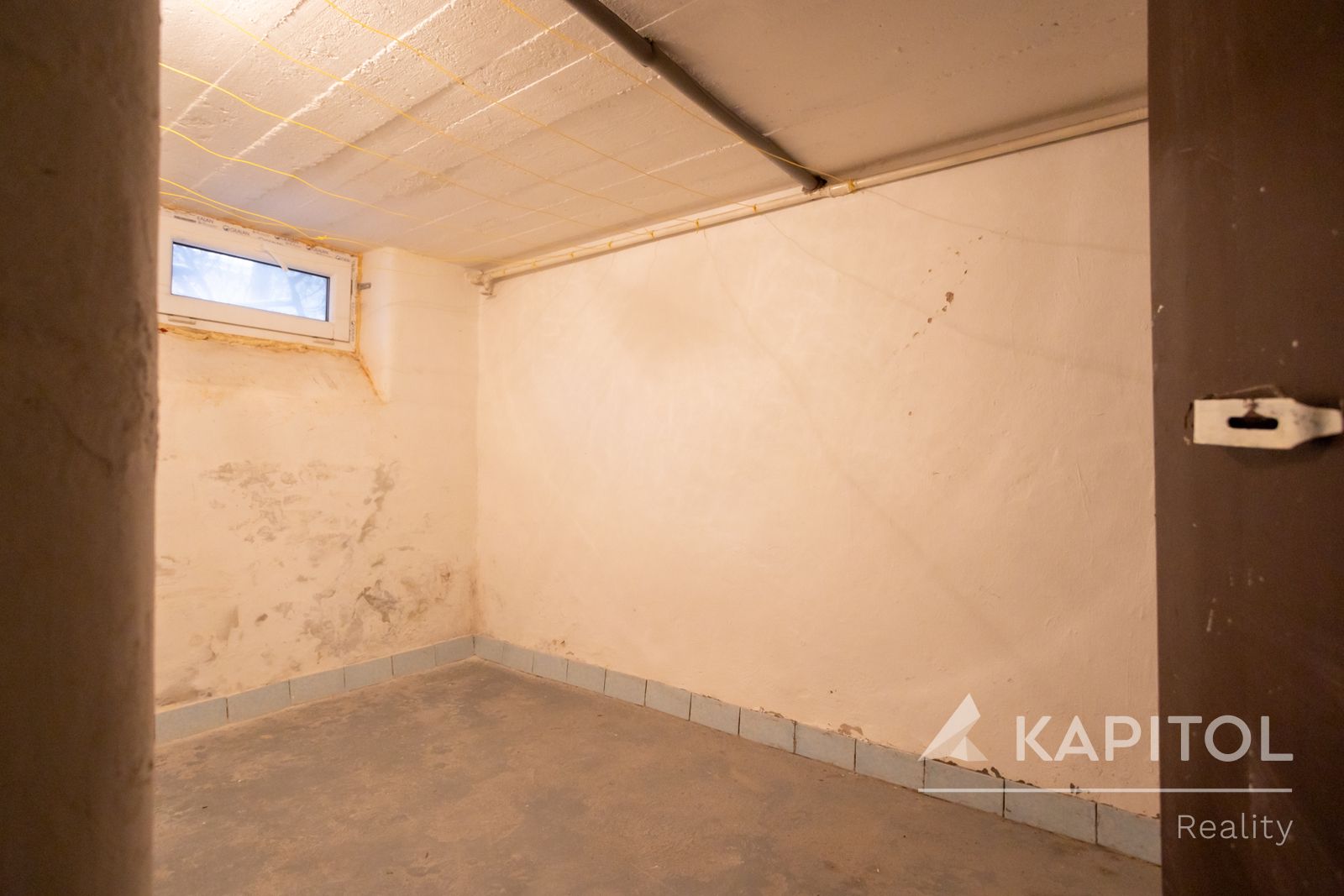 V přízemí je umístěn obývací pokoj, kuchyně, koupelna s vanou, samostatné wc, komora a z kuchyně je vstup na zahradu. Prostor se dá v případě rekonstrukce propojit, kuchyni lze spojit s obývacím prostorem, případně lze zvětšit koupelnu a zrušit komoru.… více