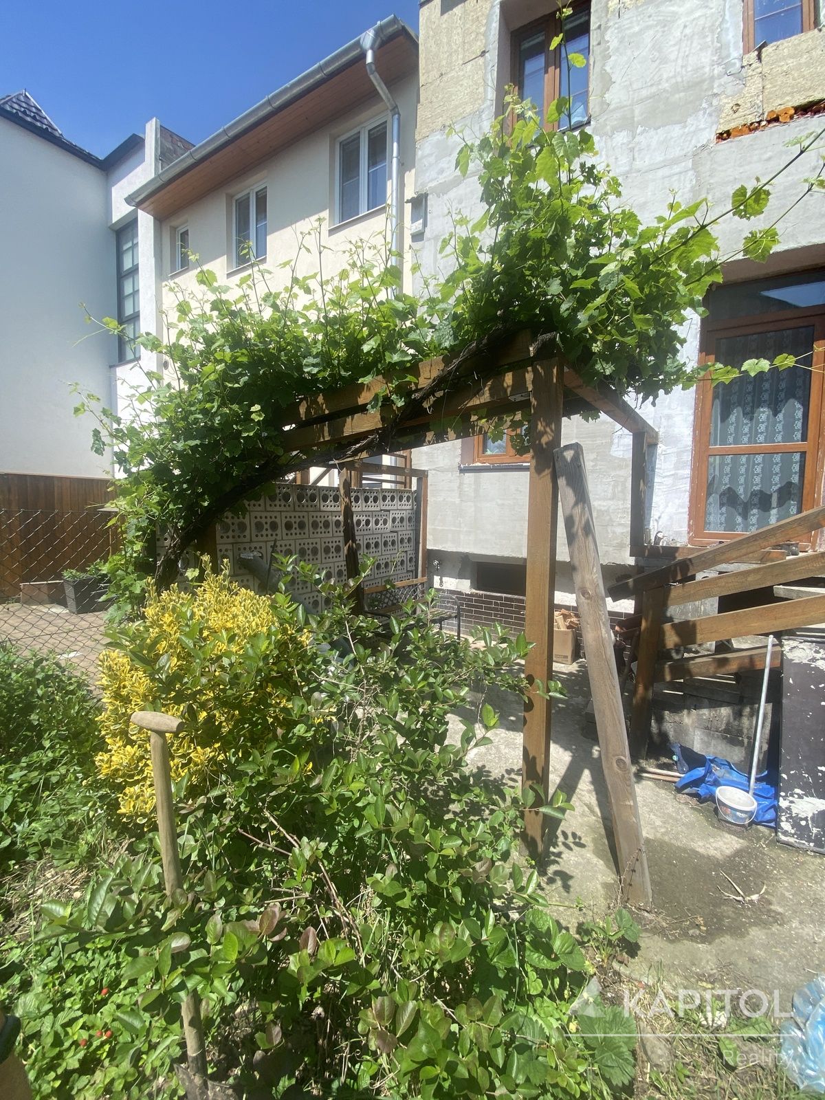 Dům disponuje předzahrádkou a malou zahradou za domem, celková plocha pozemku a zastavěná plochy včetně nádvoří je 139 m2.