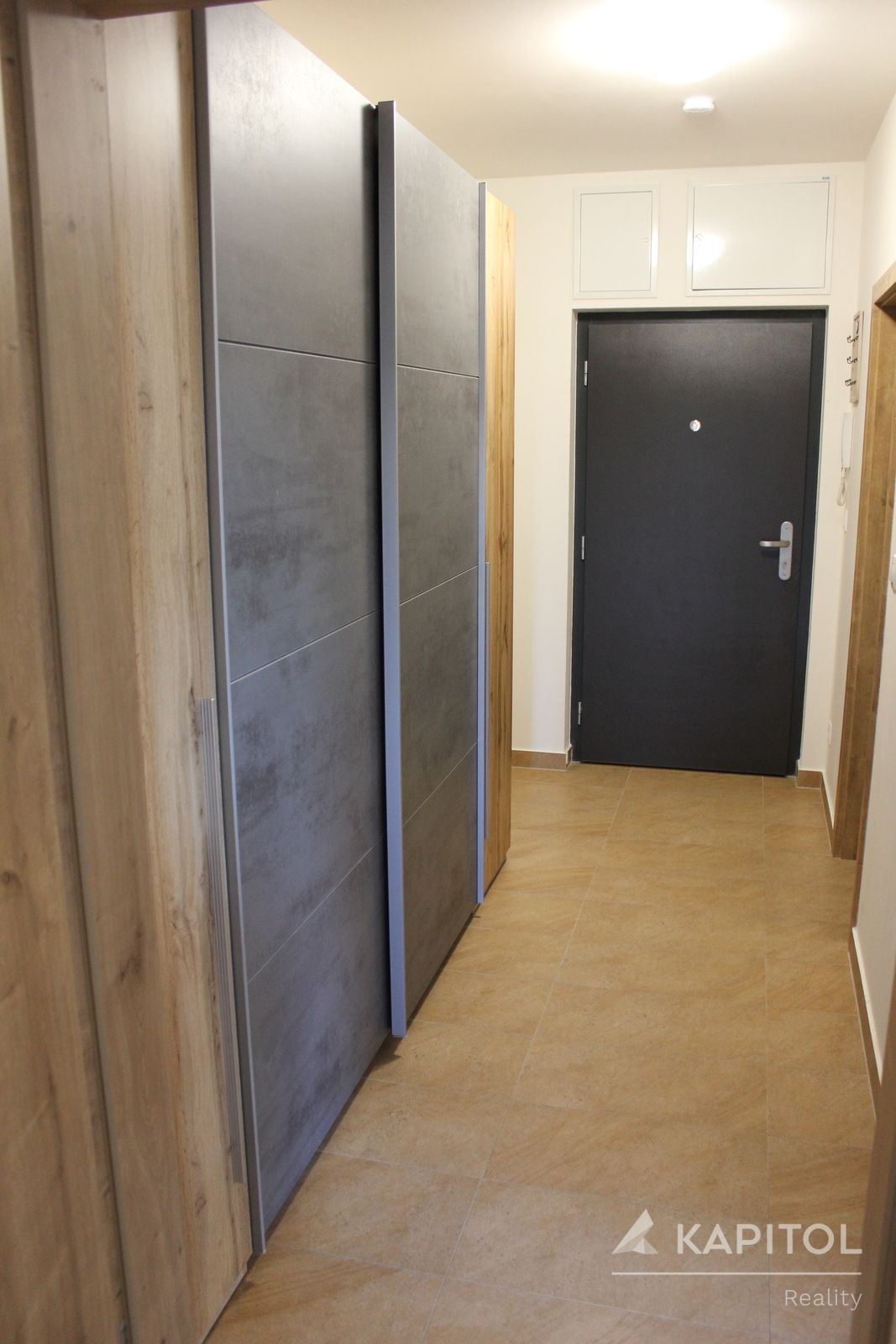 • V chodbě je umístěná velká šatní skříň, která nabízí dostatek úložného prostoru.
